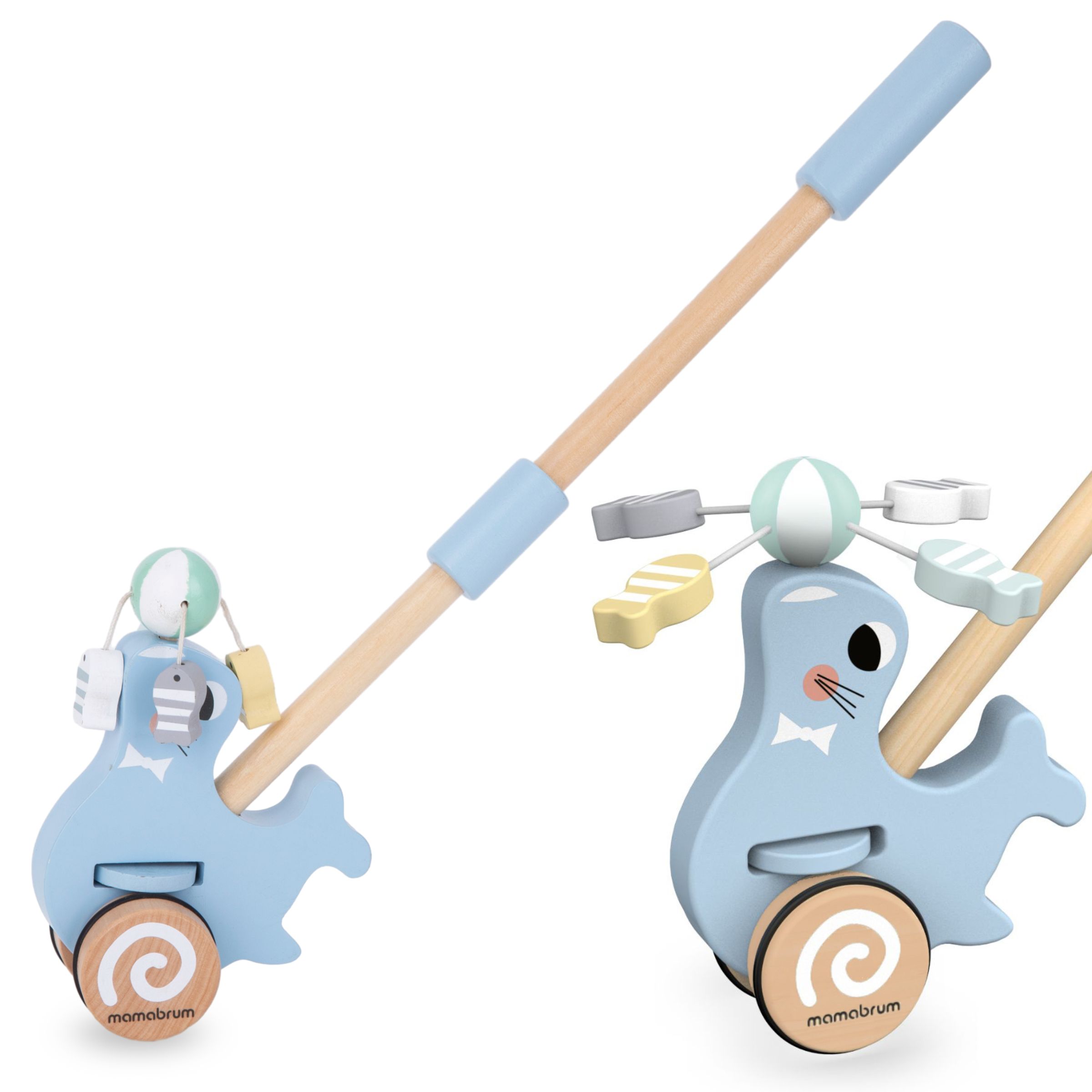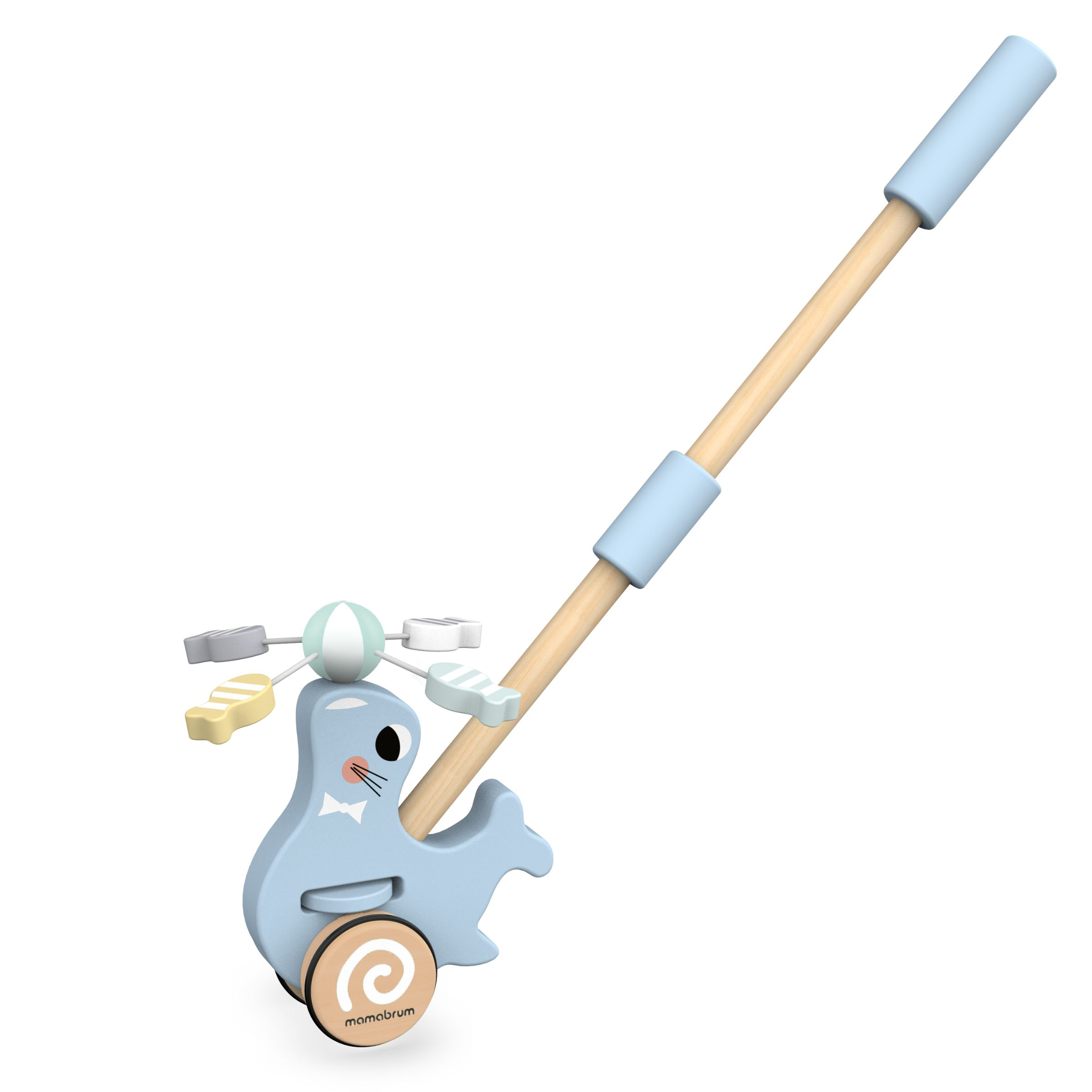 În plus, vederea unei foci jucăușe va ridica instantaneu starea de spirit a micuțului dumneavoastră, îi va stimula imaginația și îl va încuraja să fie activ. Împingătorul din lemn este disponibil într-o nuanță albastră moale.