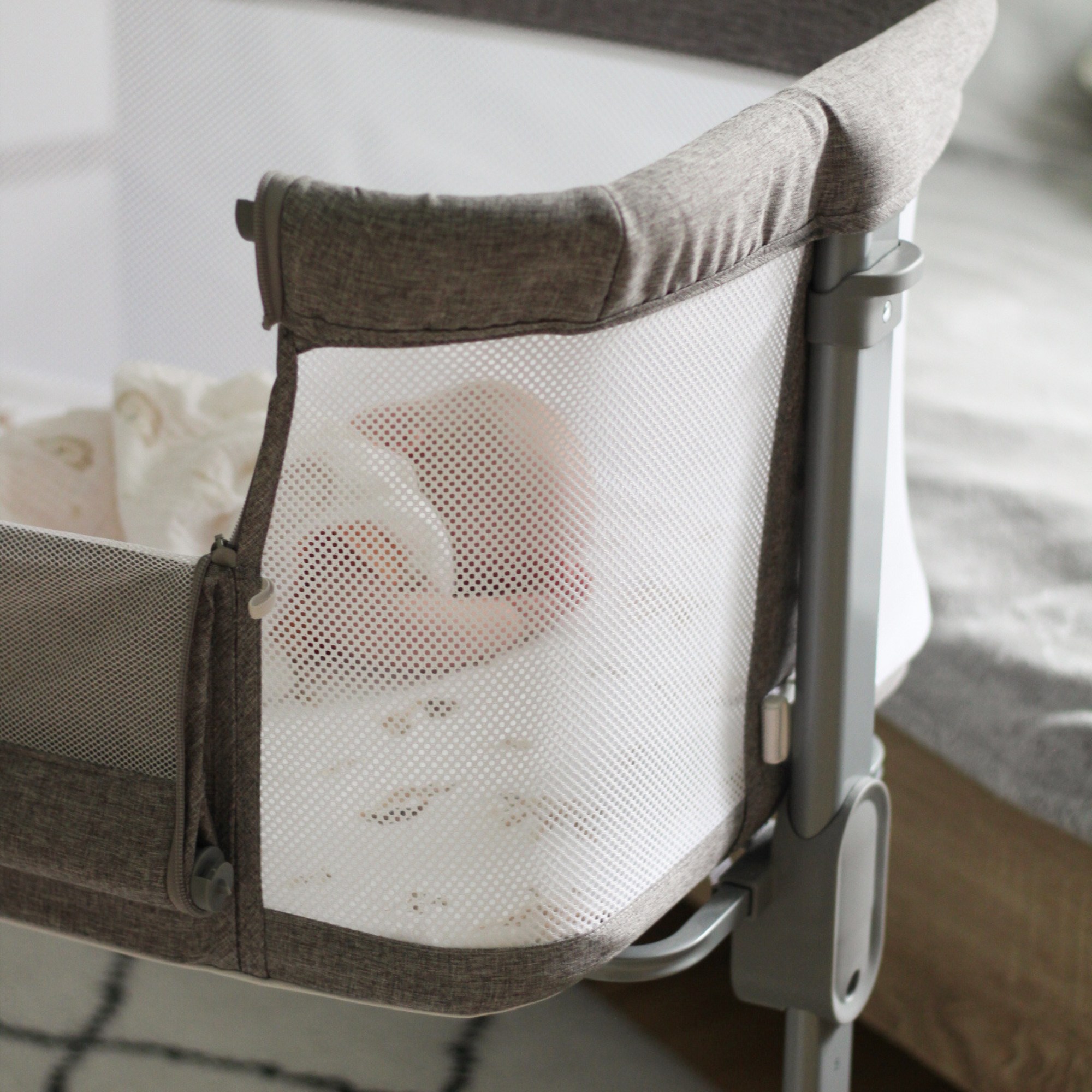 LUNA poate fi conectat în siguranță și confortabil la patul părinților datorită unor centuri de ancorare speciale reglabile . Pur și simplu glisați și fixați pătuțul copilului dvs. chiar lângă patul îngrijitorilor.