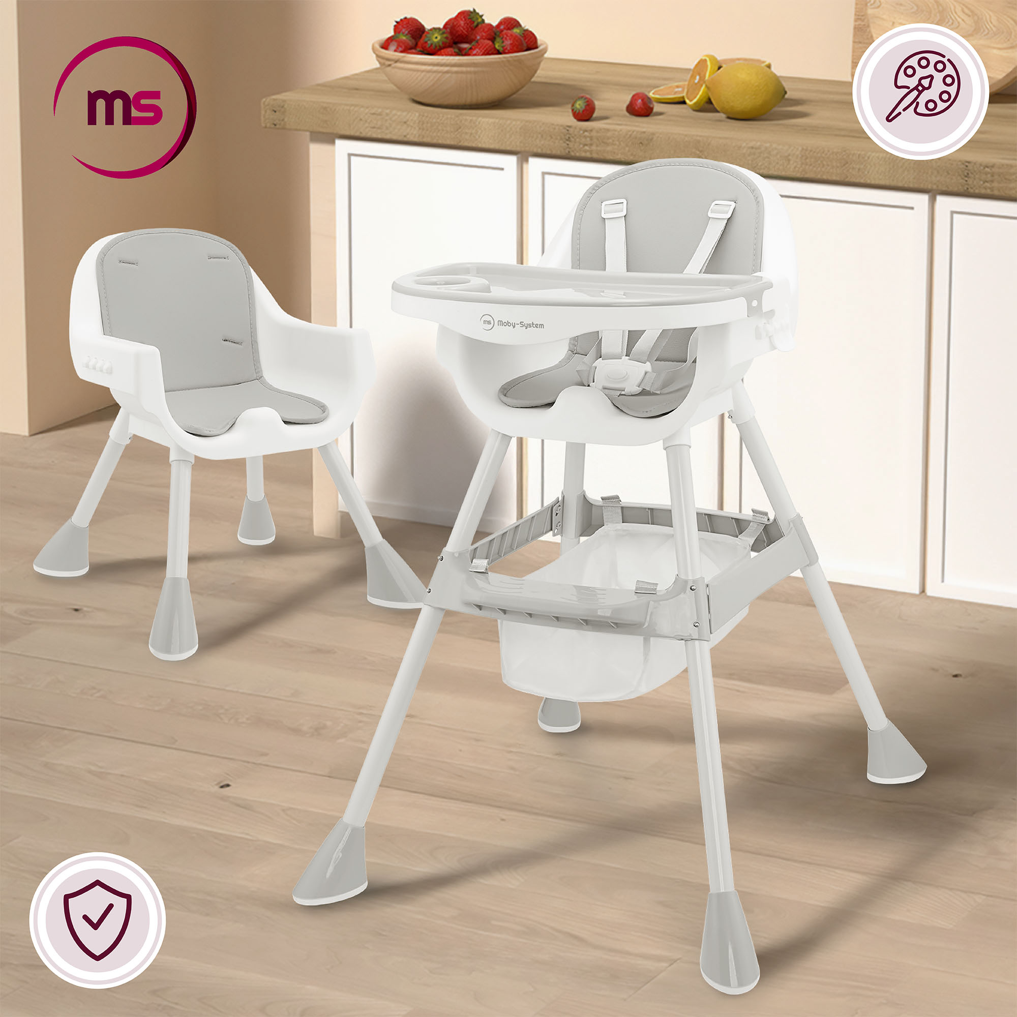 Moby-System Magnolia scaun înalt reglabil 2in1 - gri