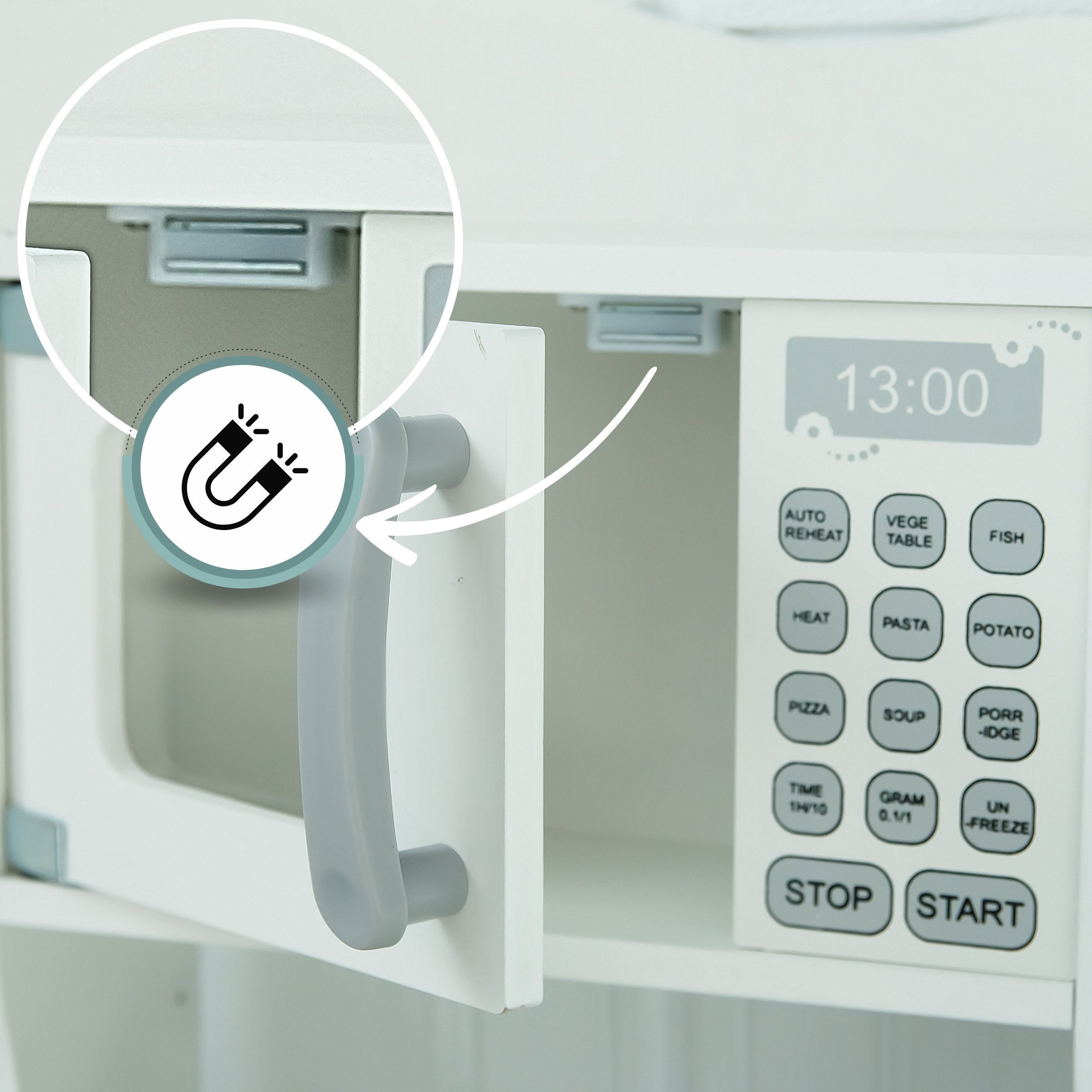 Pregătirea meselor, gătitul și coacerea este o distracție fantastică! Dotată cu numeroase accesorii, această bucătărie va stimula imaginația copilului dvs. și îi va permite să își asume rolul de bucătar!