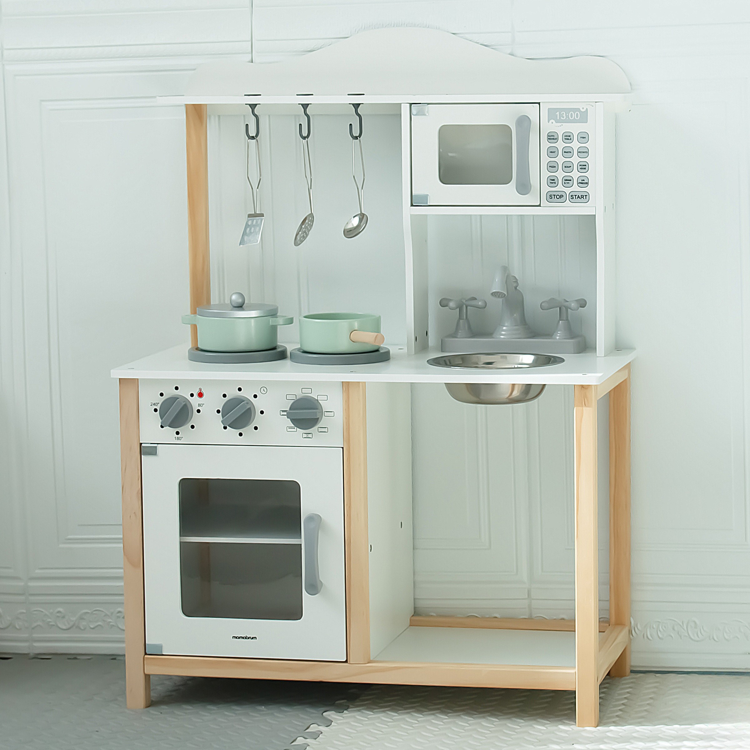 Bucătărie din lemn pentru copii cu cuptor cu microunde