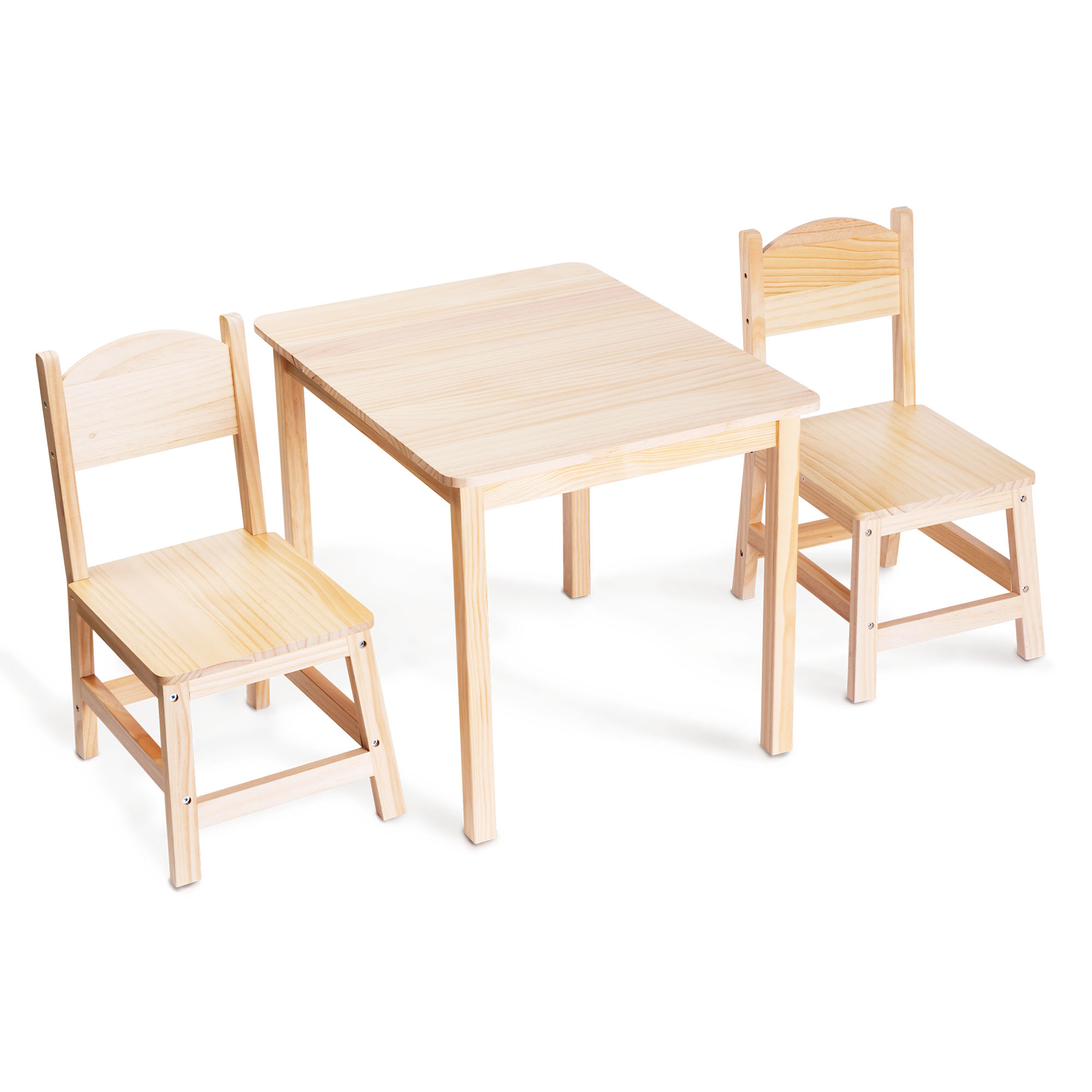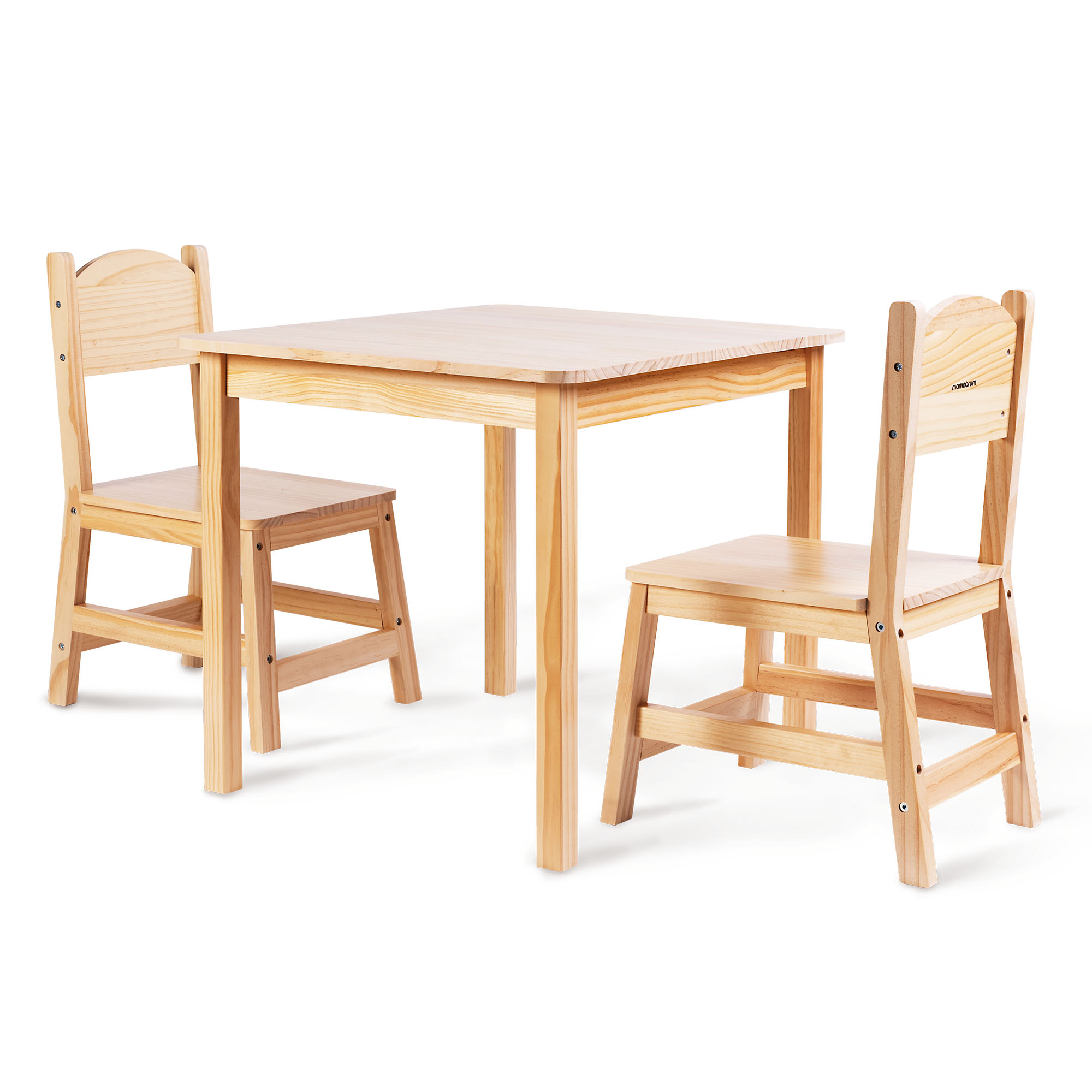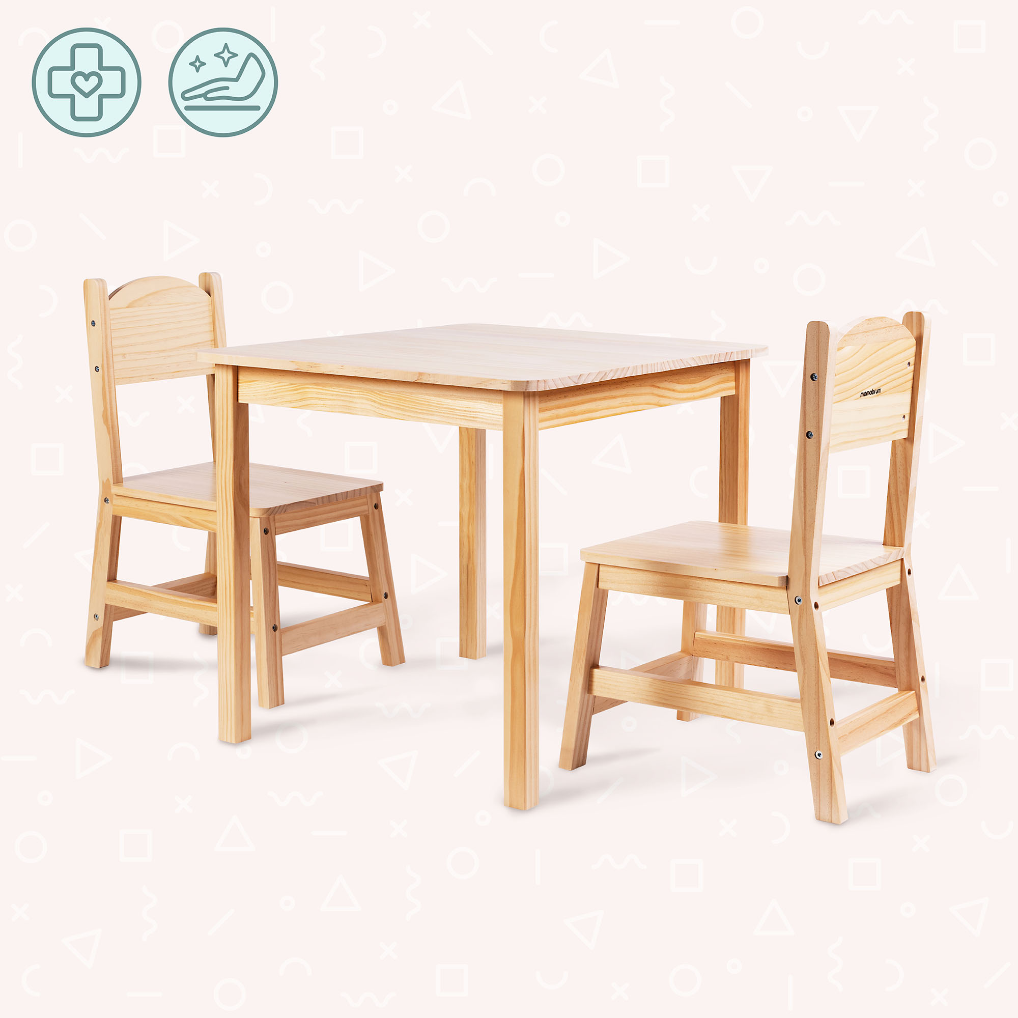 Oferă-i copilului tău propriul spațiu! – sigur, confortabil și plin de posibilități. Acest set din lemn, cu o masă și două scaune, creează locul perfect pentru desen, rezolvarea puzzle-urilor, studiu, mâncat sau joacă-te cu frații și prietenii. Lemnul natural de pin, forma ergonomică și construcția solidă fac din această piesă de mobilier un plus perfect pentru camera, camera de zi sau locul de joacă al unui copil.