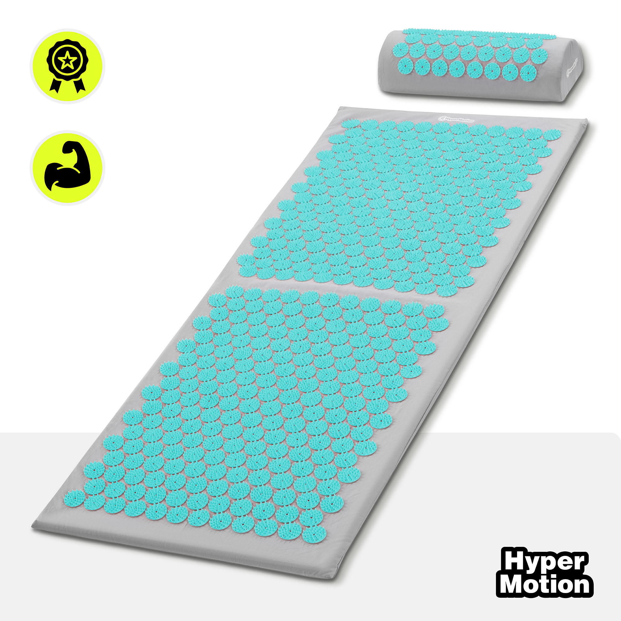 Saltea mare de presopunctură cu pernă și husă - 130 cm HyperMotion gri-mentă