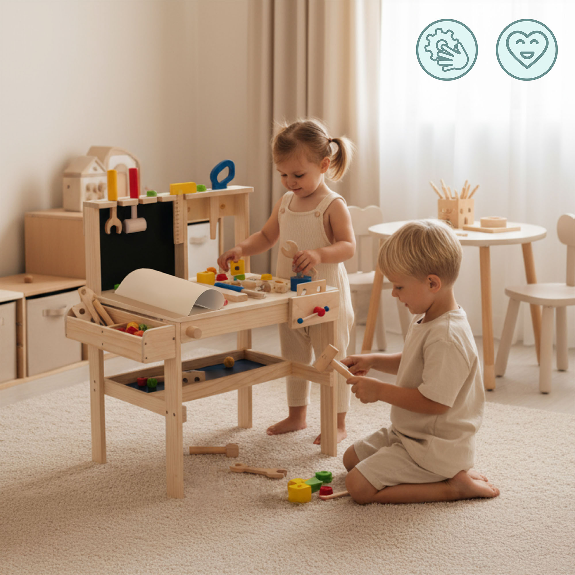 Un set frumos de bricolaj din lemn este o jucărie minunată care îi permite celui mic să dezvoltarea abilităților manualesă învețe despre unelte și despre utilizarea lor. Copiii adoră acest tip de joacă!