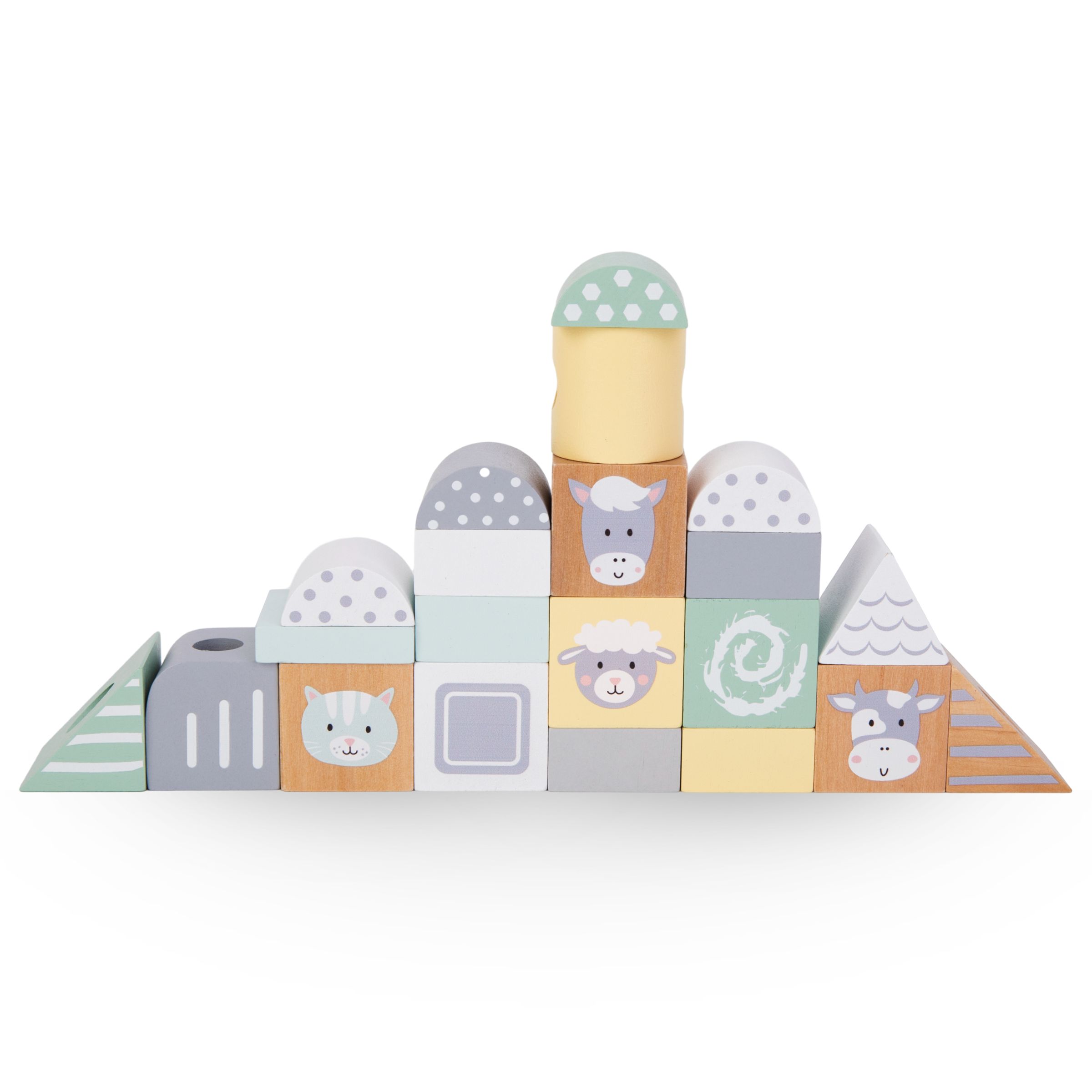- 21 de blocuri de lemn în diferite forme și culori